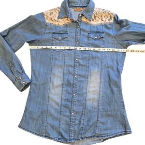 Wrangler Women’s Western Denim Shirt Lace Yoke Pearl Snap Medium