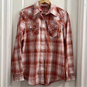 Wrangler Women’s White and Red Tailored Western Long Sleeve Shirt, Small