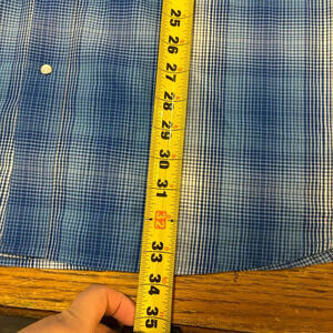 Wrangler Wrancher Blue Plaid Pearl Snap Short Sleeve Shirt Size 2XLT Men’s See pictures for reference and measurements