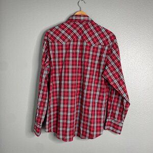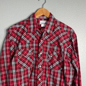 Wrangler Wrancher Long Sleeve Snap Front Shirt Collared Red Plaid Large