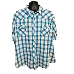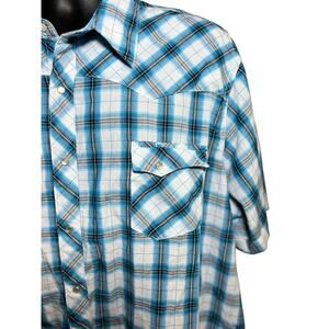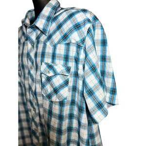 Wrangler Wrancher Men's 3X Plaid Shirt Pearl Snap Button Down Blue
