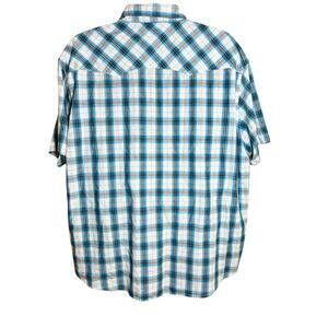 The Wrangler Wrancher Men's 3X Plaid Shirt with Pearl Snap Button Down in Blue is a classic and stylish addition to any man's wardrobe. Made by the trusted brand Wrangler, this button-up shirt features a comfortable big and tall fit, short sleeves, and a flattering button-down collar. The blue plaid pattern adds a touch of retro charm, while the snap closure gives a unique twist on the traditional design. Perfect for casual occasions, this shirt can be dressed up or down for any occasion.