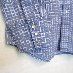 Wrangler Wrancher Men's Medium Blue/White Geometric Long Sleeve Pearl Snap Shirt