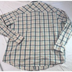 Wrangler Wrancher Pearl Snap Button Up Shirt Mens 2XL XXL Beige Brown Check