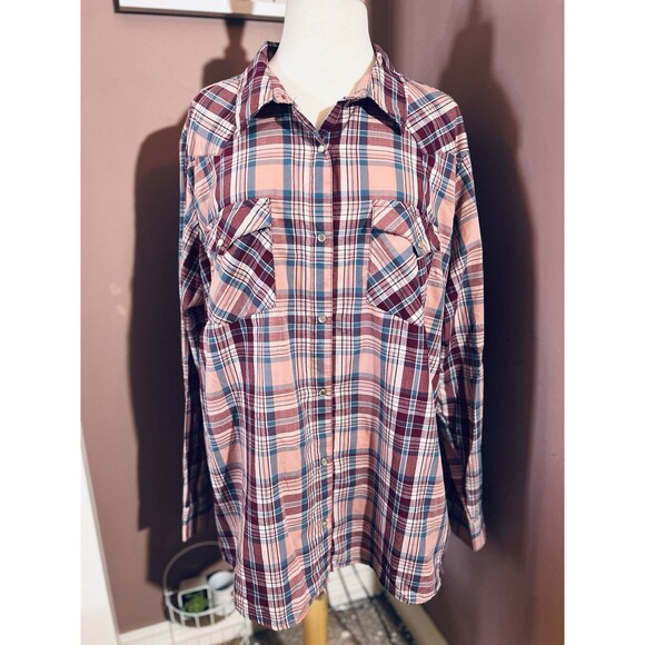 Wrangler Wrancher Pearl Snap Shirt Womens 3XL Western Plaid Vintage 90s Y2K