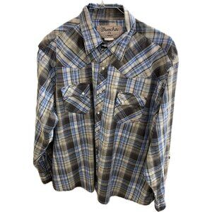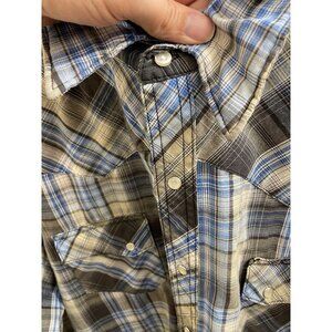 Wrangler Wrancher Shirt Men 2x Blue Plaid Pearl Snap Western Long Sleeve MTW1138