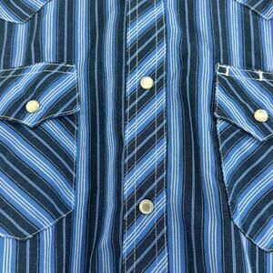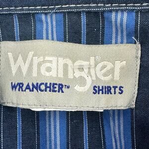 Wrangler Wrancher Shirt Mens L Blue Stripes Pearl Snaps Coastal Western Cowboy