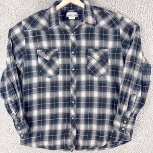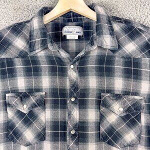 Wrangler Wrancher Shirt Mens XL Blue Flannel Plaid Outdoor Western Cowboy Work