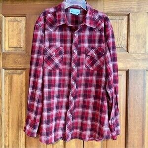 Wrangler Wrancher Shirts Men’s flannel shirt red white plaid Pearl snaps XXL