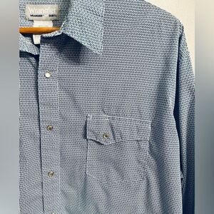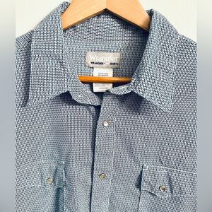 Wrangler Wrancher Shirts long sleeve Geometric Blue Perl Snap casual Men’s XXL