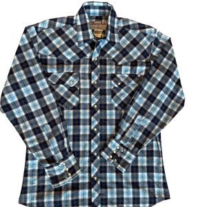 Wrangler Wrancher Vintage 80s 90s Western Pearl Snap Plaid Shirt Blue Men’s M