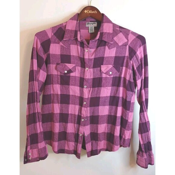 Wrangler Wrancher Western Pearl Snap Shirt M Long Sleeve Pink Plaid Cowgirl