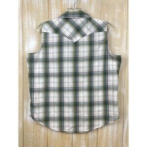 Wrangler Wrancher Women's L Sleeveless Shirt Pearl Snap Up Western Top Cowgirl