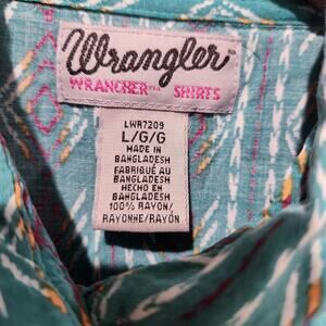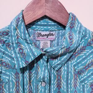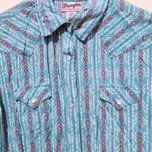 Wrangler Wrancher Womens Western Aztec Pearl Snap Button Up Blouse Size Large