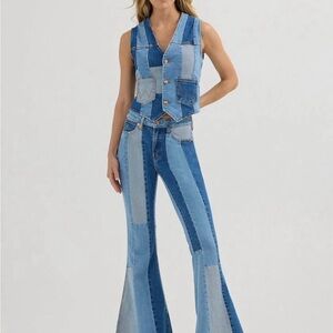 Wrangler X Lainey Wilson Patchwork Blues Bell Bottom Jeans - Size 28x34
