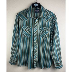 Wrangler XXL 2XL Multicolor Striped Western Long Sleeve Pearl Snap Button Shirt