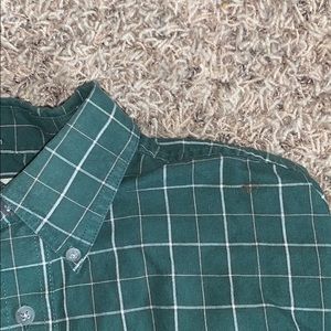 Green wrangler button down shirt. Does have a small stain up by the collar, haven’t tried removing it. Make an offer.