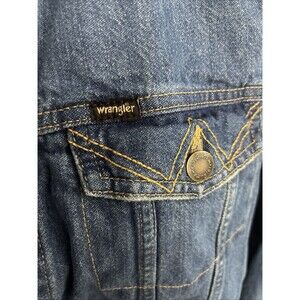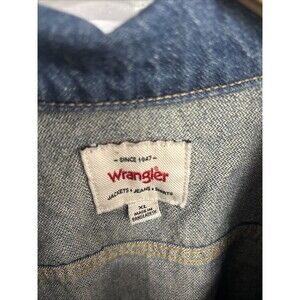 The Wrangler denim jacket in XL size is a classic and stylish outerwear option for men. Made from durable denim material, this jacket features a timeless blue color and a regular fit. The jacket's design effectively combines functionality with a casual denim style, making it a versatile piece that can be easily paired with a variety of outfits. Perfect for everyday wear or layering in cooler weather, this Wrangler denim jacket is a wardrobe essential for any man looking for a high-quality and on-trend addition to his closet.
