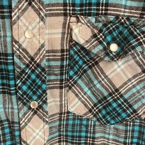 Size not listed but worn by a men’s medium. Pearl Button snap long sleeve. Lots of life left.