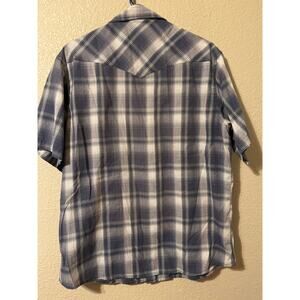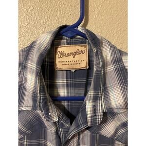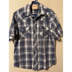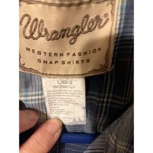 This Wrangler men's snap front shirt is in good condition and ready for a new home! It is a size large and made of a comfortable 55% cotton and 45% polyester blend.