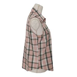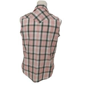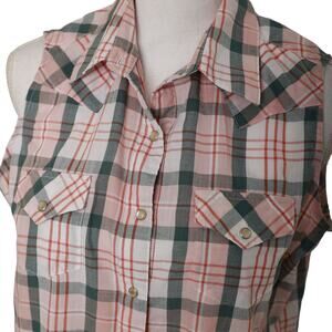Wrangler pearl snap women's sleeveless button down shirt pink Plaid medium