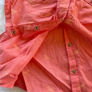 Pink shirt with horse motifs. Short sleeves and button-up design.