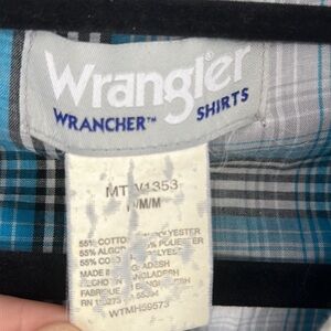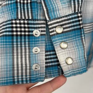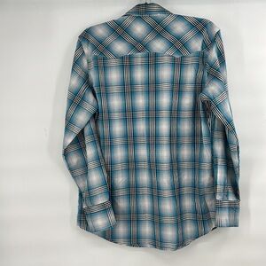 Wrangler plaid blue mens shirt Pearl snap button up size medium western