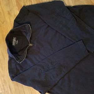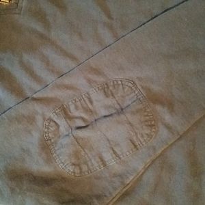 Pull over sweat shirt with elbow reinforcement. Minimal fading from washing. No stains or holes.