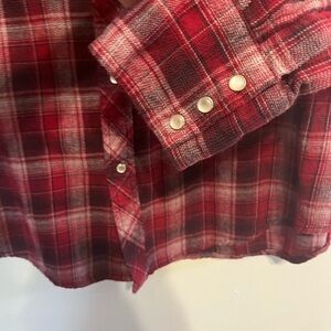 Wrangler rancher grunge western red plaid button down cowboy shirt Sz Large