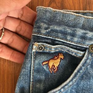 Wrangler rare vintage high waisted jeans 1970s with horse embroidery. Size Junio