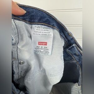 Wrangler women’s cut off denim shorts. Size 32. I believe these used to be men’s jeans (see photo of tag) and have been made into cut offs. Please be aware these have not been professionally cut, inseam cuts are not symmetrical. (Also pictured) Priced accordingly. ☺️