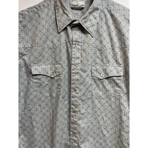 Wrangler wrancher shirt size Large short sleeve gray blue white pearl button