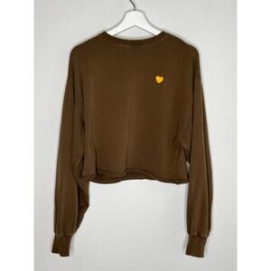 Wrangler x Fred Segal Love Dreams Good Jeans Crop Sweatshirt Olive Brown Women L