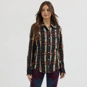 🌟Wrangler x Lainey Wilson Black Western Pearl Snap Checotah Shirt | Size Large