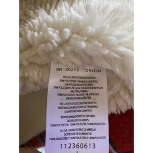 Fabric blend: Acrylic, Nylon, Polyester, Wool, and other fibers; Trim & Lining: Faux sherpa, polyester lined sleeves