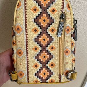 Wrangler Aztec Print Yellow Orange Brown Crossbody Sling Bag Nice!