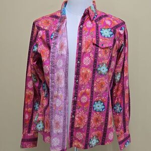 Wrangler Pink Pearl Snap Long Sleeve Western Shirt Size XL Cowgirl Country Rodeo