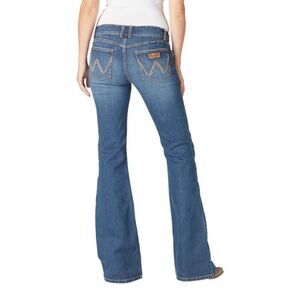 Wrangler Retro Mae Mid Rise Flare Jeans Womens 3x34 Medium Wash 112321493