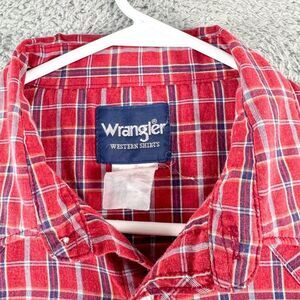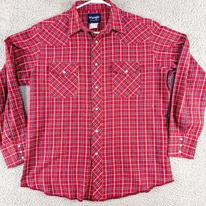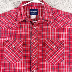 Wrangler Western Shirt Mens Large Red Blue Plaid Pearl Snap Cowboy Ranch Farm