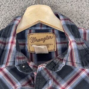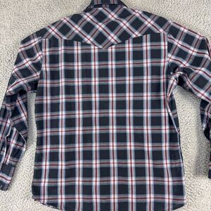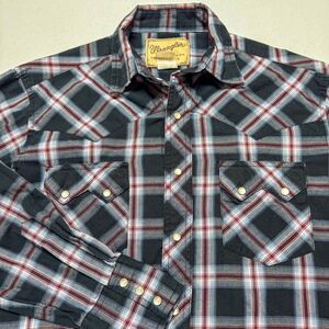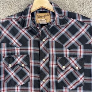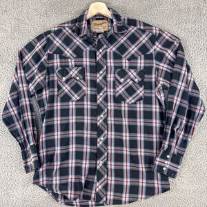 Wrangler Western Shirt Mens Medium Black Plaid Pearl Snap Cowboy Ranch Farm Work