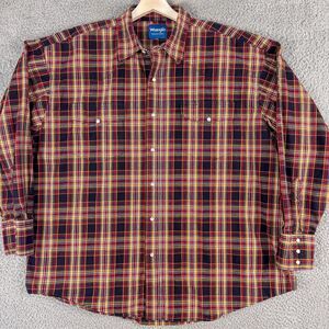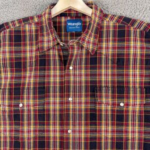 Wrangler Western Shirt Mens XXL Red Black Plaid Cowboy Pearl Snap Farm Ranch