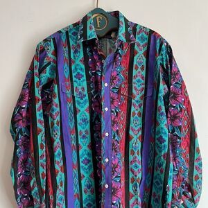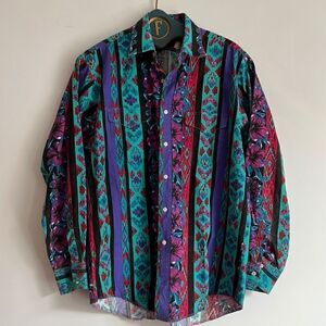 Wrangler Western Shirt Mens Large 17 Aztec Print
