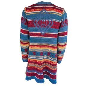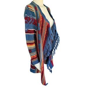 Wrangler Women’s M Long Cardigan Sweater Fringe Open Front Boho Aztec Southwest