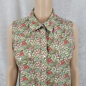 Embrace a fresh look with this floral sleeveless pearl snap blouse. Perfect for any occasion, this top features a charming mix of green and pink hues. Ideal for pairing with your favorite jeans or skirt.