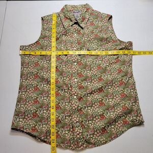 Wrangler Wrancher Shirts Green Floral Sleeveless Pearl Snap Shirt Top Blouse