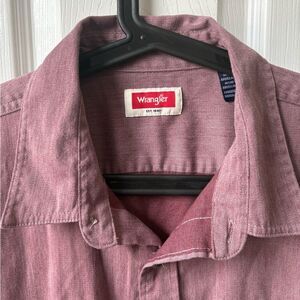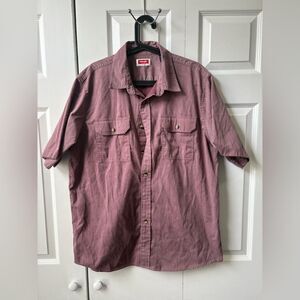 Wrangler men short sleeve shirt. Size large. Woven. Casual. Collared. Cotton, polyester and spandex. Chest pockets. Good condition