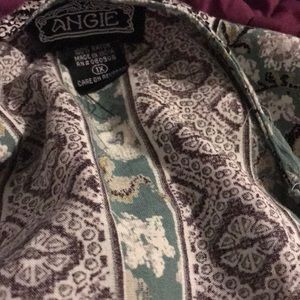 An extra large wrap. Only been worn once. It’s green, brown, and black with different designs on it