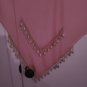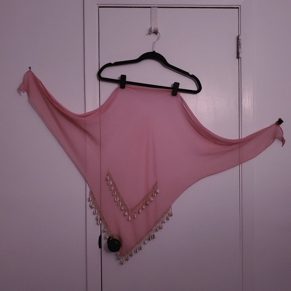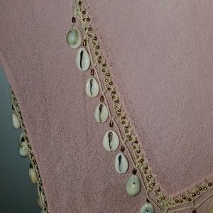 Triangular shaped waist wrap with puka shell detailing perfect for any belly dancer, small pen mark shown