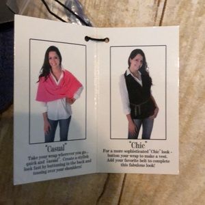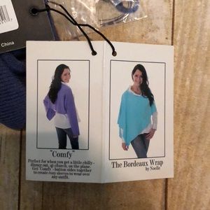 New with tags. Can be worn a variety of different ways as shown. It is blue-ish purple. I guess you could say periwinkle.