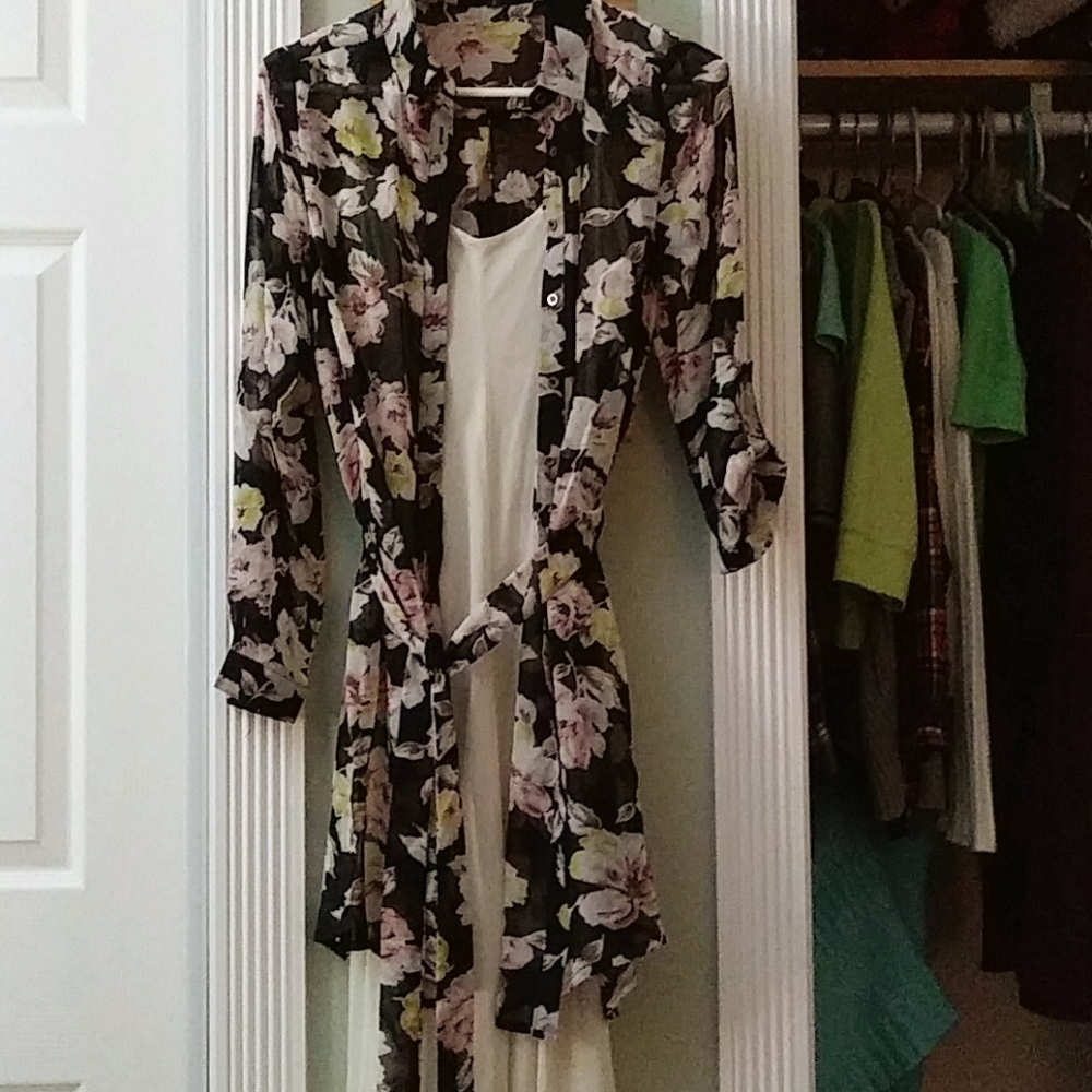 Its a long sleeve cover up button down and tie beautiful brand new never warn from a boutique says size 8 and I'm small and can fit perfect uts 8 pette.
